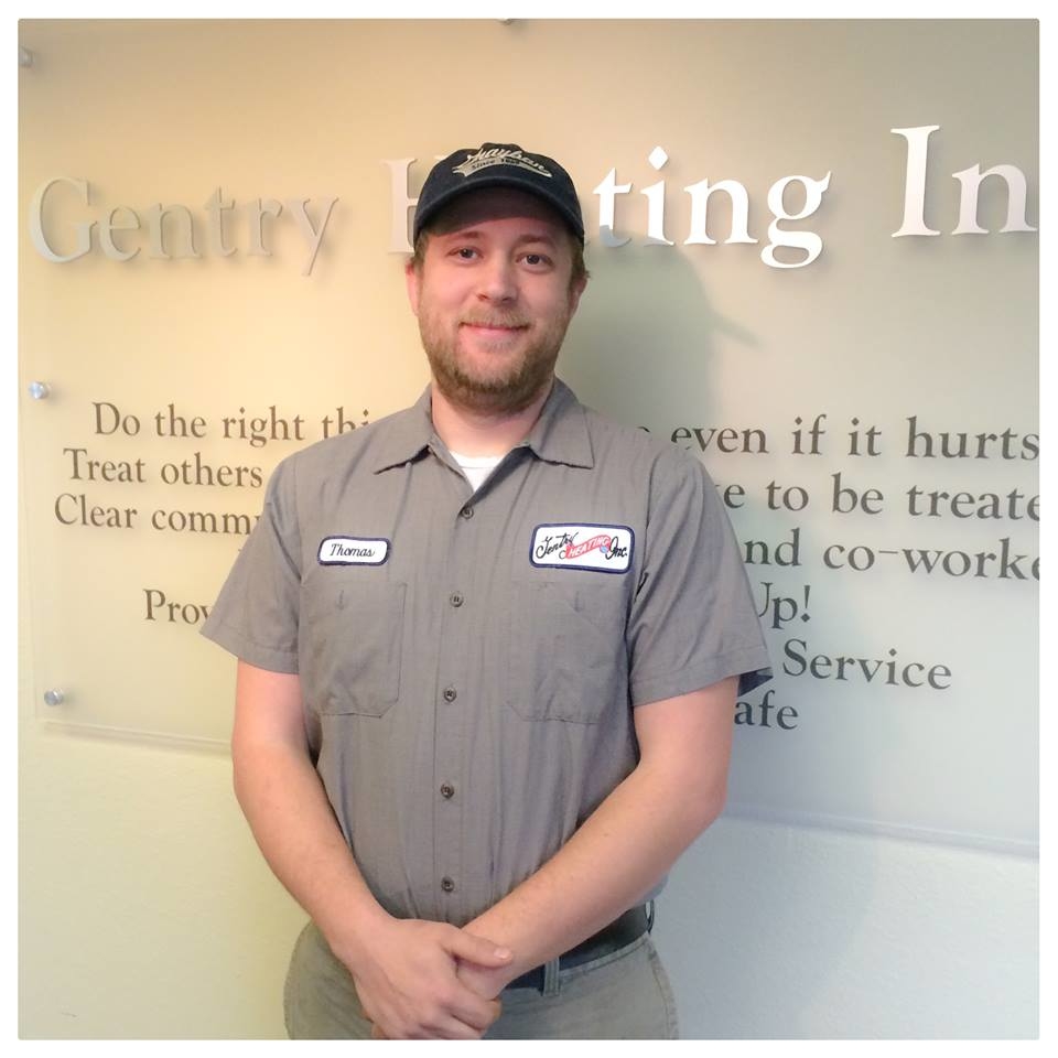Jacob Takala has been with Gentry Heating Inc. since moving to Asheville in 2012. He grew up in Wilmington, NC. Jacob enlisted in the US Army after high school where he served seven years including 3 years in the 82nd Airborne Division and one year patrolling the Korean DMZ. He was also a Korean linguist, graduating from the Defense Language Institute in Monterey, CA. His time in the Army solidified Jacob’s commitment to honor, integrity and hard work. After completing his military service in 1999, he worked for an HVAC company in Fayetteville, NC, where he was a sheet metal shop manager for ten years and then the Installation Manager, supervising a team of twenty people on a wide variety of residential and commercial construction projects throughout North and South Carolina. Jacob has over 16 years of experience installing HVAC systems for both commercial and residential properties and is an accomplished welder and fabricator. His favorite part of the job is meeting new customers and contractors in the community and assisting them with solving complex problems with creative, innovative solutions. He is committed to providing efficient, quality, innovative services in WNC. Newly married in May 2014, Jacob enjoys hiking WNC with his wife, Tina and their dogs. They are outdoor enthusiasts and enjoy any adventure from zip-lining to kayaking. Jacob also enjoys making metal art, playing racquetball and softball and going to live music events. Jacob and Tina are licensed foster parents and are dedicated to helping those less fortunate in the community.
